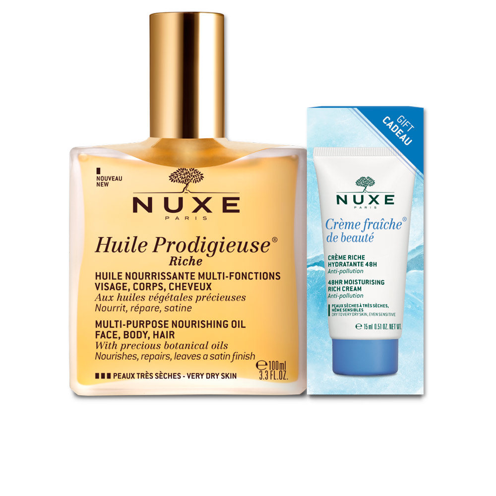 NUXE nos presenta HUILE PRODIGIEUSE HUILE RICHE LOTE 2 pz un set de cremas para el cuidado facial para mujer con EAN 3264680018886.