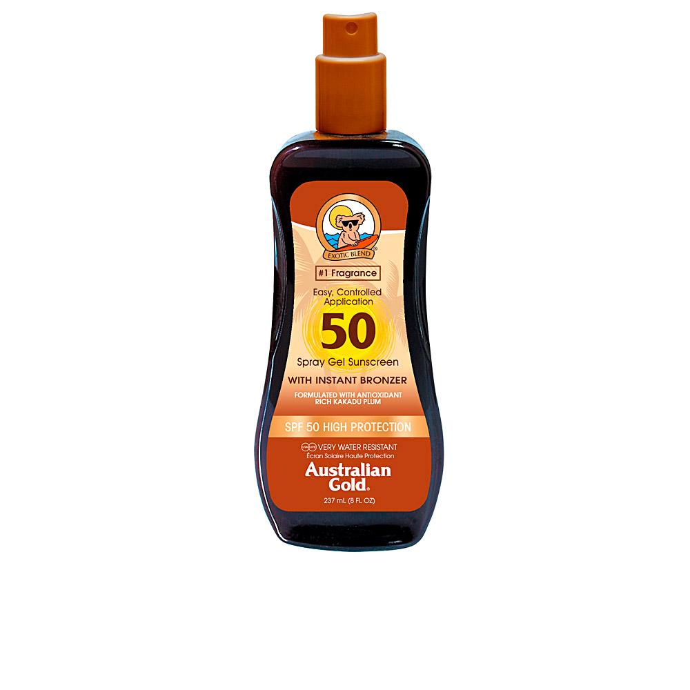 AUSTRALIAN GOLD nos presenta SUNSCREEN SPF50 spray gel with instant bronzer 237 ml un producto de protección solar unisex con EAN 0054402720066.